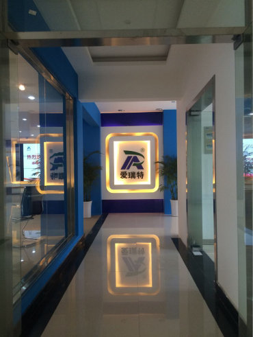 愛瑞特企業標志,被合理地運用在展廳入口處,很好的體現了公司的特性,同時也能取得了特色鮮明的展廳設計效果。